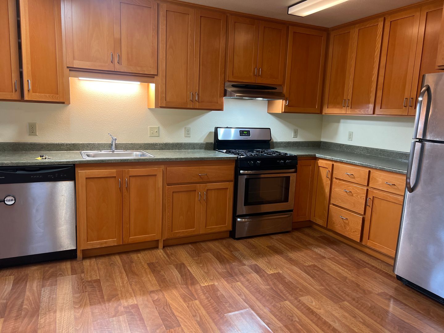Kitchen, gas stove, fridge, dishwasher, garbage disposal